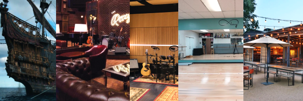 - The second floor leads to the music studios. This is where practise rooms for music and singing can take place, and there's access to common musical instruments from across the multiverse available here! There are also mixing booths, and up here is where the music available across the building is stored that plays from the various speakers. There are also karaoke booths for singing with friends, as well as where people can chat with each other...privately.